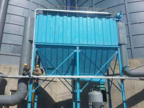 YMD-I型低壓噴吹脈沖除塵器由濾袋組件、導流裝置、脈沖噴吹系統(tǒng)、除灰系統(tǒng)、控制系統(tǒng)、離線保護系統(tǒng)、箱體等組成。脈沖布袋收塵器含塵氣體由導流管進入各單元室,在導流裝置的作用下,大顆粒粉塵被分離后直接落入灰斗,其余粉塵隨氣流均勻進入各倉室過濾區(qū),過濾后的潔凈氣體透過濾袋經(jīng)上箱體、提升閥排風管排出。當過濾袋表面粉塵達到 厚度時,濾袋內(nèi)外的壓差就會逐漸增加;當壓差達到設定值(由壓差儀控制時久來自貯氣罐的空氣就會迫使脈沖閥的膜片自動打開,輸送 量的空氣,通過風管由噴嘴噴入濾袋內(nèi),進行在線自動反吹清灰,抖落濾袋上的粉塵。落入灰斗中的粉塵經(jīng)卸灰閥排出后,利用輸灰系統(tǒng)送出。
